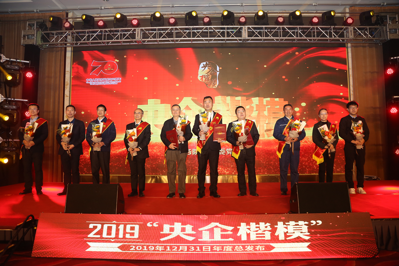 2019年12月31日,,,,,,国资委党委在京举行2019年第三批“央企楷模”宣布暨年度总宣布运动,,,,,,授予中国电信韦乐平、中交集团王明安、保利集团蒋迎春等3位同志“央企楷模”声誉称呼,,,,,,向全社会宣布宣传2019年度第四届10位“央企楷模”先进事迹。。。。。。。。国资委副主任、党委委员翁杰明出席宣布会并会见全体“央企楷模”。。。。。。。。