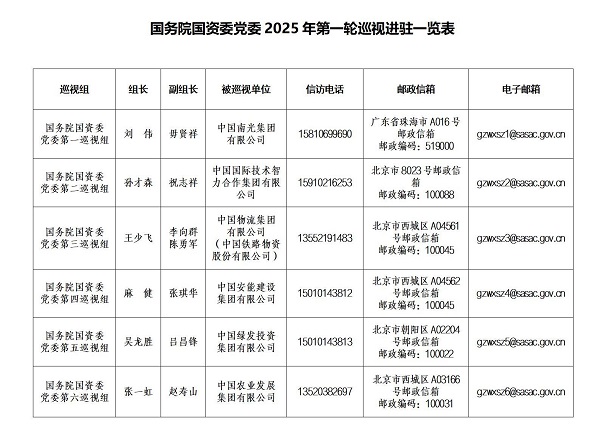 ƾ֤¹úÎñÔº¹ú×Êίµ³Î¯ºÍѲÊÓÊÂÇéÏòµ¼Ð¡×é°²ÅŰ²ÅÅ£¬£¬£¬£¬£¬×èÖ¹2025Äê5ÔÂ20ÈÕ£¬£¬£¬£¬£¬¹úÎñÔº¹ú×Êίµ³Î¯2025ÄêµÚÒ»ÂÖѲÊÓÍê³É½ø×¤ÊÂÇé¡£¡£¡£¡£¡£¡£¡£¡£¹úÎñÔº¹ú×Êίµ³Î¯6¸öѲÊÓ×齫¶ÔÖйú¹ú¼ÊÊÖÒÕÖÇÁ¦ºÏ×÷¼¯ÍÅÓÐÏÞ¹«Ë¾¡¢ÖйúũҵÉú³¤¼¯ÍÅÓÐÏÞ¹«Ë¾¡¢Öйú°²Äܽ¨É輯ÍÅÓÐÏÞ¹«Ë¾¡¢ÖйúÄϹ⼯ÍÅÓÐÏÞ¹«Ë¾¡¢ÖйúÎïÁ÷¼¯ÍÅÓÐÏÞ¹«Ë¾¡¢ÖйúÂÌ·¢Í¶×ʼ¯ÍÅÓÐÏÞ¹«Ë¾µÈ6¼ÒÆóÒµµ³Î¯¿ªÕ¹Í¨ÀýѲÊÓ£¬£¬£¬£¬£¬¶ÔÖйúÎïÁ÷¼¯ÍÅÓÐÏÞ¹«Ë¾ËùÊôÖйúÌú·Îï×ʹɷÝÓÐÏÞ¹«Ë¾µ³Î¯¿ªÕ¹ÌἶѲÊÓ¡£¡£¡£¡£¡£¡£¡£¡£