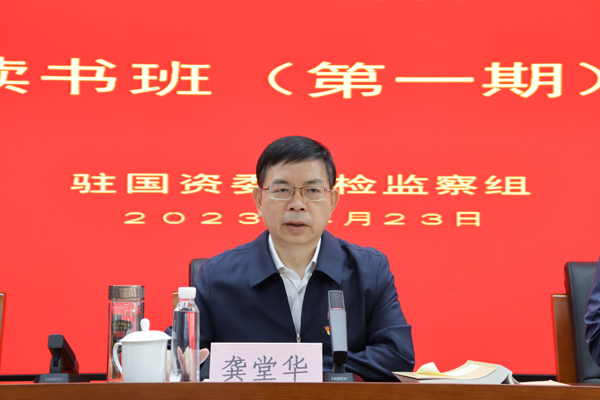 4月23日至25日,,,,,驻国资委纪检监察组举行学习贯彻习近平新时代中国特色社会主义头脑念书班(第一期)。。。。。驻国资委纪检监察组组长、国资委党委委员龚堂华作开班讲话,,,,,带动领读《习近平著作选读》(第一、二卷)重点篇目,,,,,并团结现实谈学习体会。。。。。