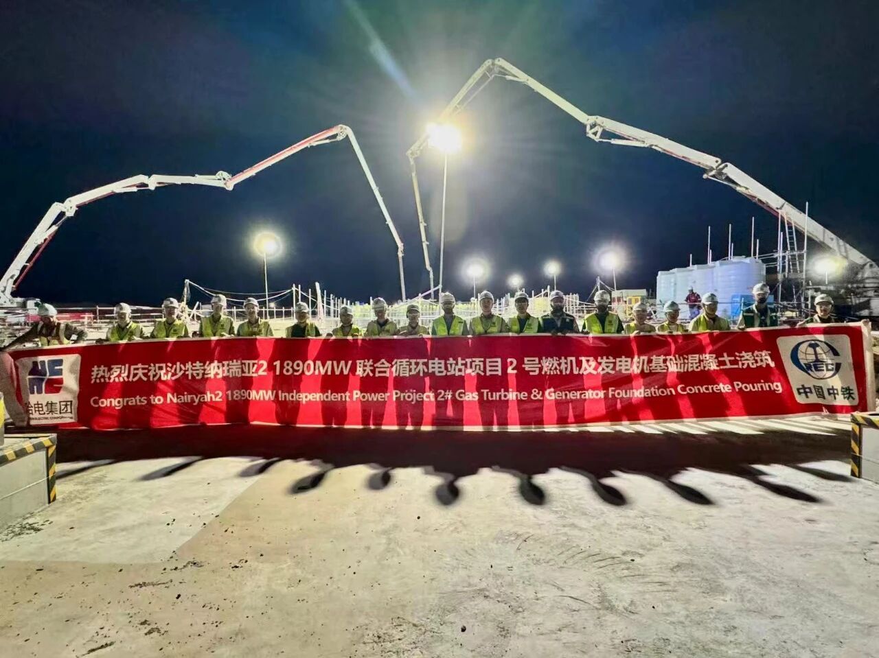 本次燃机及发电机基础浇筑的施工质量直接关系到后续装备的装置精度与恒久运行的稳固性,,,,,,手艺要求高,,,,,,施工组织重大。。。。。为包管本次浇筑使命高质量完成,,,,,,现场团队秉持“字斟句酌,,,,,,清静至上”的管理理念,,,,,,组织手艺、施工、清静、质量等各专业团队,,,,,,明确了各项手艺指标和质量控制要点,,,,,,对埋件装置精度,,,,,,钢筋、模板装置质量,,,,,,混凝土坍落度及入模温度控制,,,,,,混凝土养护等实验全历程监视,,,,,,同时对沙特极端天气等特殊情形提前准备应对步伐,,,,,,为顺遂完本钱次浇筑作业提供了充分包管。。。。。